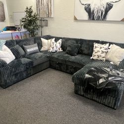 Sectional In Black Corduroy With sleeper Sofa And Storage Chaise $1,299Glendale, AZ