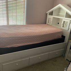 Farmhouse style solid wood queen-size bed with storage drawers. $900Gilbert, AZ