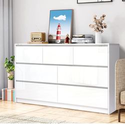 White Malm 7 Drawer Dresser for Bedroom - 55'' Wooden Dresser Modern High Gloss Chest of Drawer Handle Free, Large Long Storage Organizer Cabinet for $200Chandler, AZ