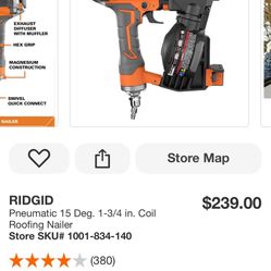 RIDGID Pneumatic 15 Deg. 1-3/4 in. Coil Roofing Nailer Store$170Glendale, AZ