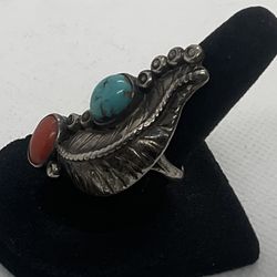 Turquoise And Coral On Sterling Silver Ring$185Scottsdale, AZ