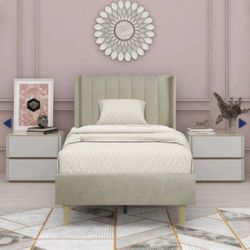 Wade Logan Eriksay Low Profile Upholstered Platform Bed With Wingback Headboard, Twin Size, Beige Li$85Peoria, AZ