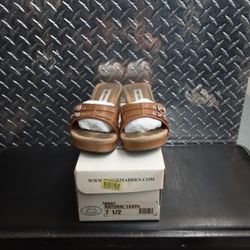 Steve Madden Brat Natural Leather Slides Mules Wedges Sandals 7.5 7 1/2$10Phoenix, AZ