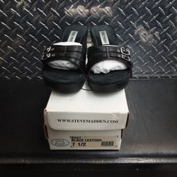 Steve Madden Brat Black Leather Slides Mules Wedges Sandals 7.5 7 1/2$10Phoenix, AZ