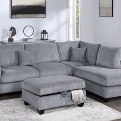 New Gray Or White 3pc Corduroy Sectional And Ottoman Sofa Couch $499Phoenix, AZ