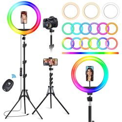 STALLY 10.2" Ring Light with Stand, 75" Tall Ring Light with Phone Holder and Wireless Remote, 12 Dimming Levels, 32 Color Modes Selfie Light Tripod f$25Phoenix, AZ