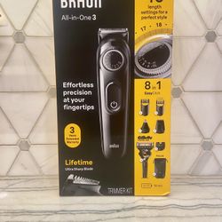 Braun All-in-One 3 Trimmer Kit. Has 8-in-1 functions and 40 length settings for different styles. Comes with a Gillette ProGlide razor, $25Glendale, AZ