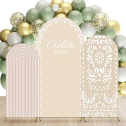 3 Pcs Mexican Arch Backdrop Cover 4Ft 5Ft 6Ft Beige Backdrop Double-Sided Arch Stand Covers Photo Background For Talavera Baby Shower Wedding Birthday$25Avondale, AZ