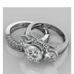Round Cut Three Stone Filigree Engagement Ring with Crown Accents And Matching Wedding Band Size 6$1,500Phoenix, AZ