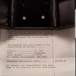 1.7ctw/Total Caret Diamond Studs Earrings- London Gold Jewelery Appraisal Included$3,495Phoenix, AZ