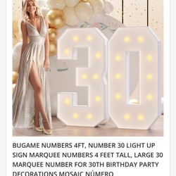 4 Feet Tall Light Up Marquee Numbers 30 $45Scottsdale, AZ