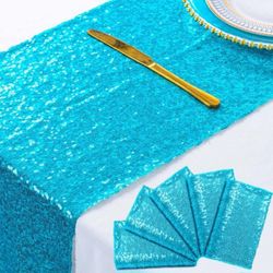 Turquoise Bridal Shower Decorations 5Pcs Aqua 12''x72'' Sequin Table Runners Aqua Blue Party Supplies Baby Shower Table Runner Sequin Fabric$22Phoenix, AZ