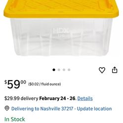 Storage Container, 17 Gallon, Clear with Yellow Lid, Heavy-Duty Plastic$10Phoenix, AZ