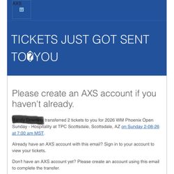 2 Tickets To The Open With Parking$200Phoenix, AZ