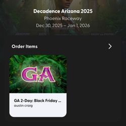 2 Day GA Decadence Ticket 2026 For Sale!$400Phoenix, AZ