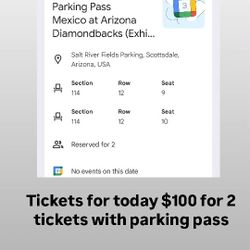 World Baseball Classic Exhibition Game: Mexico Vs Dback (2 Tickets)$60Mesa, AZ