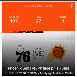 Suns Vs 76ers 2/7$220Phoenix, AZ
