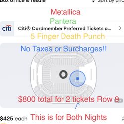 Metallica Pantera TWO NIGHT PASS. Primo Seats$800Phoenix, AZ