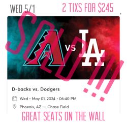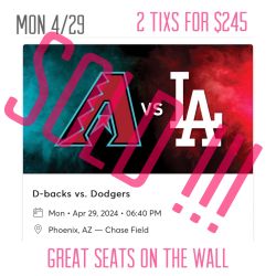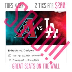 Arizona Diamondbacks vs LA Dodgers 4/30 2 Tixs For $200 $200Buckeye, AZ