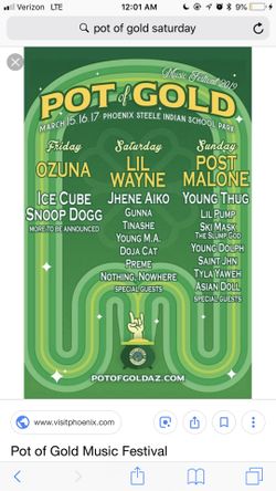 Pot of gold tickets. Sunday only post Malone $100$100Phoenix, AZ
