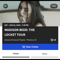 Madison beer the locket tour concert tickets$150Phoenix, AZ