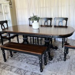 ❤️Farmhouse table bench 5 chairs black brown dinning comedor farm style dinner dining set rustic boho $350Peoria, AZ
