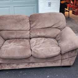 Comfortable brown loveseat has soft microfiber upholstery. This two-seater sofa with plush back cushions and wide armrests is brown. It has a sturdy b$100Phoenix, AZ