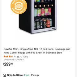 NewAir 19 in. Single Zone 126 (12 oz.) Cans, Beverage and Wine Cooler Fridge with Flip Shelf, in Stainless Steel$210Glendale, AZ