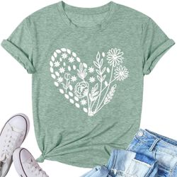 Flower Tshirts Shirts for Women Cute Dandelion Tshirt Casual Short Sleeve Wildflower Floral Heart Print Graphic Tee Tops. Size: XL$8Peoria, AZ