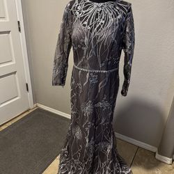 Feriani Couture gray and silver flowers and details maxi dress with long sleeves. Size: 16 #glamour #eveningwear #formal Size 16 alteration were made$190Phoenix, AZ