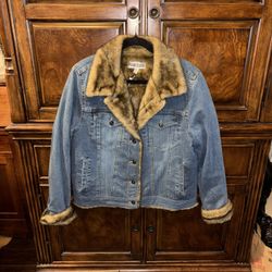 Vintage 1990’s Marvin Richards Blue Denim Jacket with Brown Faux Fur Trim Size Large$125Phoenix, AZ