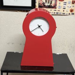 Vtg IKEA 1999 PS Red Clock Shelf Mantle Keyhole Metal 18.5” Contemporary Working$80Litchfield Park, AZ