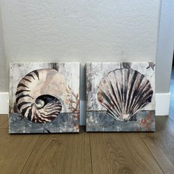 28x14 Two Piece Ocean Seashell Beach Textured Sequin Canvas Wall Art- Canvas Artwork $25Gilbert, AZ