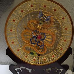 Chinese gold tone filigree enamel dragon plate with stand$115Mesa, AZ