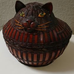 Vintage Handcrafted Woven Cat Lidded Basket Jewelry Box $23Chandler, AZ