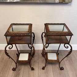 TWO Antique Glass & Bronze Iron Two Tier Bijouterie Display Tables-Curio Display$650Gilbert, AZ
