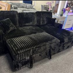 Sectional With Ottoman In Black Corduroy $599Glendale, AZ