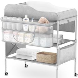 Baby Changing Table with Wheels, Maydolly Portable Adjustable Height Folding Diaper Station with Nursery Organizer & Storage Rack $65Sun City, AZ