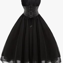 Black Ladies Sleeveless Halter Gothic Dress With Lace & Corset. Size Medium/Large $20Guadalupe, AZ
