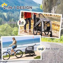 Aosom 2-in-1 Pet Bike Trailer for Small Dogs, Road-Visibility Dog Stroller Bicycle Carrier, Weather-Strong Bike Wagon Trailer Sidecar Attachment, Gray$80Avondale, AZ