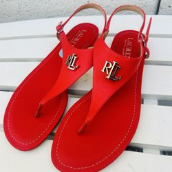 Lauren Ralph Lauren Ellington RED Leather Thong Flat Sandals Women’s Size 6$60Phoenix, AZ