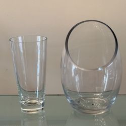 2 Thick Crystal Glass Asymmetrical Flower Vases Mikasa Vase$19Tempe, AZ