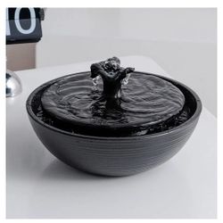 Ceramic Tabletop Water Fountain Feature for Indoor and Outdoor Home Decoration Table Desktop Office (Black)
