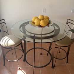 Modern Round Glass-Top Hi Top Table w/ Metal Base + Chairs (36”)$175Sun City, AZ