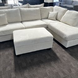Cream Corduroy Comfy Sectional W/ Ottoman $599Mesa, AZ