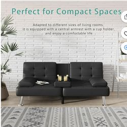 Convertible Futon Sofa Bed Recliner Lounge, Black PU Leather with 2 Cup Holders, Removable Armrests for Living Room$145Phoenix, AZ