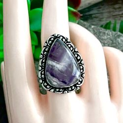 Teardrop Natural Chevron Amethyst Silver Ring Sz 8.5$25Sun City, AZ