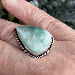 Teardrop Natural Larimar Silver Ring Sz 9$35Sun City, AZ