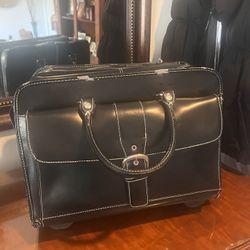 Black Leather Rolling Travel Bag By Franklin Covey Has Wear On It $5Phoenix, AZ
