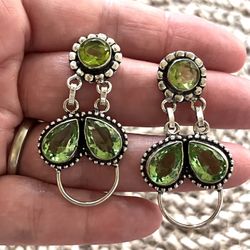 Green Peridot Crystal Quartz Sterling Silver 1.7” Post Earrings$25Sun City, AZ